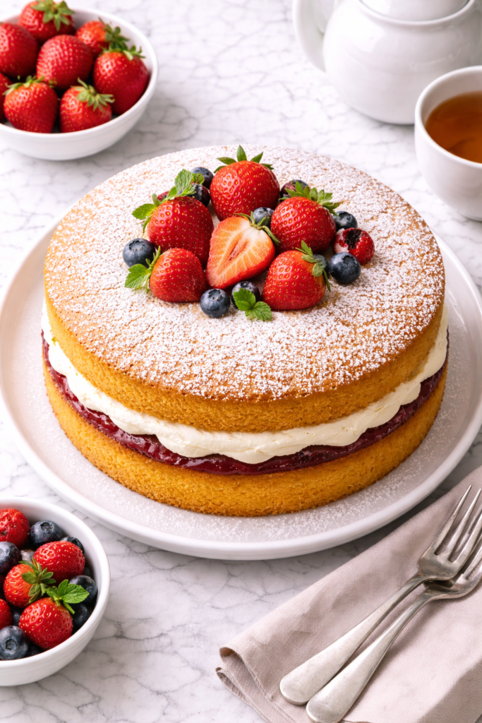Victoria Sponge Cake is a timeless classic that represents the elegance and restraint of traditional British baking. Light, balanced, and unfussy, it proves that excellent results come from good ingredients and careful technique rather than decoration. Whether served at afternoon tea, a celebration, or a simple family gathering, this authentic UK recipe remains a cornerstone of British food culture and a reliable favourite for bakers of all levels.